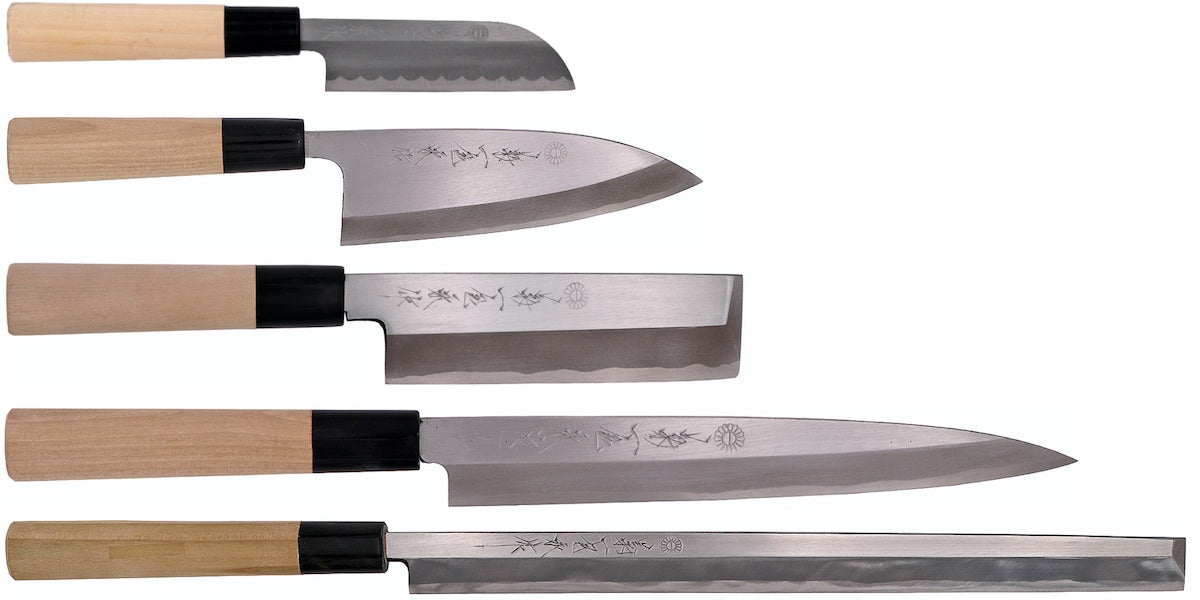 Historically Japanese knives were single beveled (one sided) and were meant to be held in the Right hand only. (Although we do offer limited Left Handed knives) This style is still preferred today by professional Japanese chefs and if you’re interested in proper sushi technique these are a great choice.