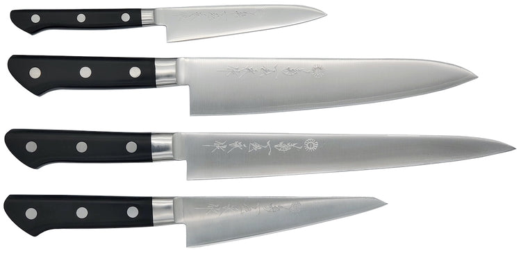 The GS Series is one of our heaviest western knives and is popular with chefs who want the quality of a Japanese knife with the weight and design of a European blade. The Swedish Gold stainless steel core is sandwiched between SUS410 stainless which protects and adds corrosion resistance. These blades can withstand heavy work while maintaining a sharp edge for fast performance.