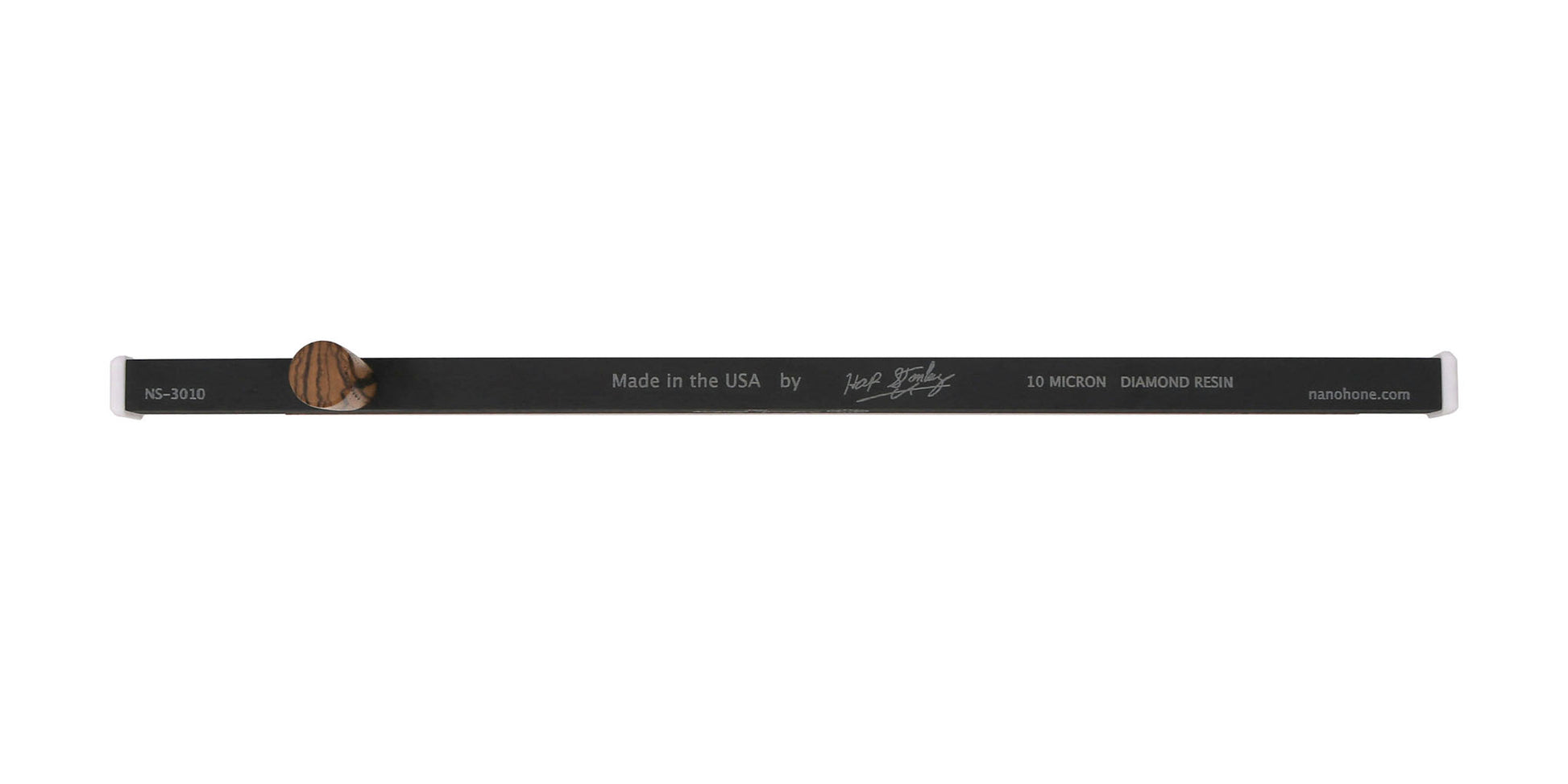Think of it as the evolution of the round honing steel. This is a 10 micron (1300 grist) grit diamond resin fused to an aluminum rod giving you a flat surface for better and more precise honing and blade care. The Diamond Resin material of the Nano Strop is softer than steel but stands up to wear, and with each stroke aligns your blade for the best cutting experience.