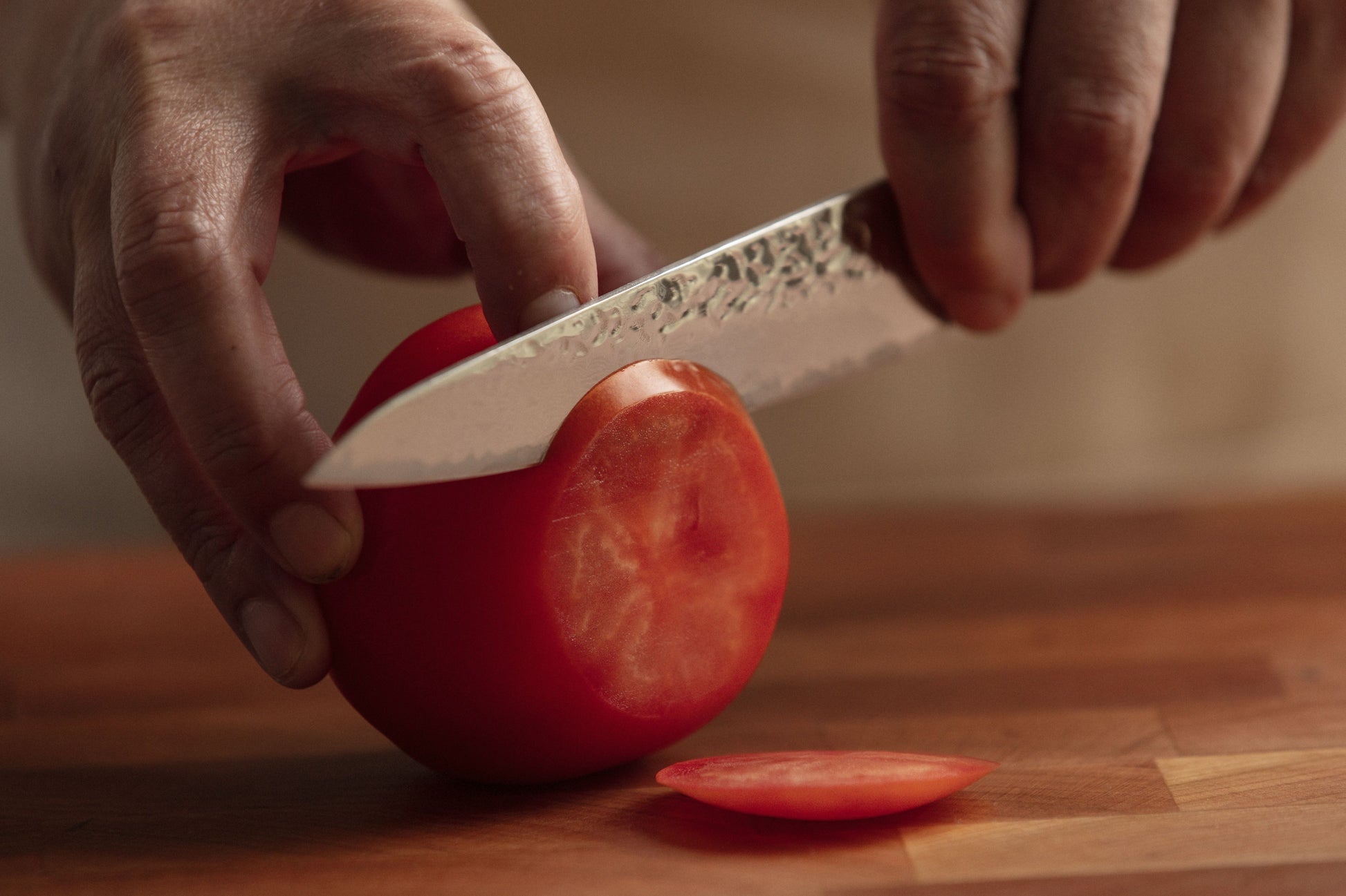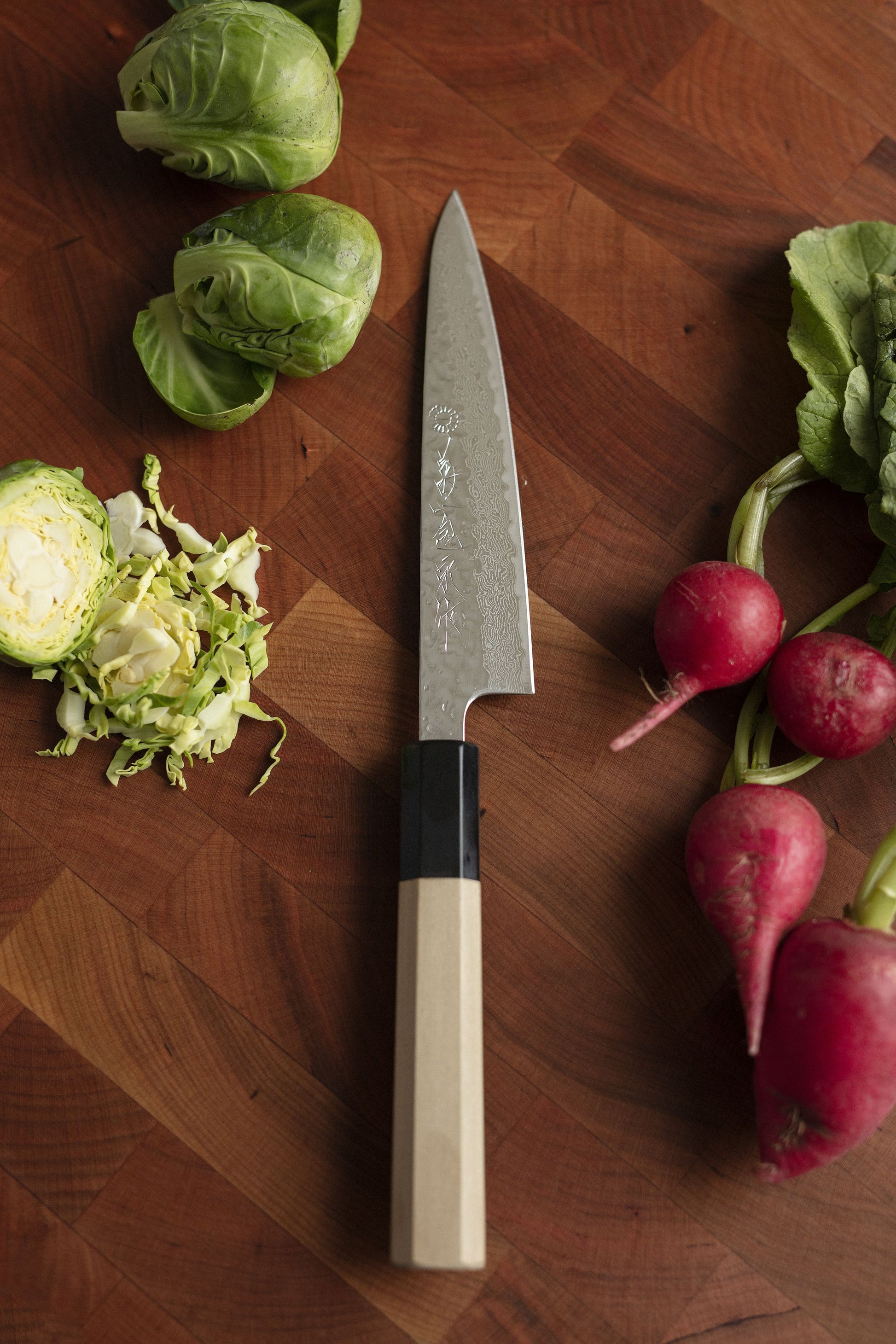 Perfectly Ergonomic for the hand & lightweight.. the Damascus Tsuchime Petty is a versatile tool that can be used for both pearing & chopping lighter produce.. In theory, you maybe able to chop heavier vegetables like carrots (etc) [especially when sharp], but I would recommend the chef's knife for that. I got this as a 2nd knife.. and thought it better than a simple pearing knife. I am very happy to have gone this route. Just be sure to keep it sharp.. I am a working man.. so I haven't broke my stones out in a while.. at any rate, I cannot Imagine anyone ever being disappointed with Kikuichi Cutlery! :-)