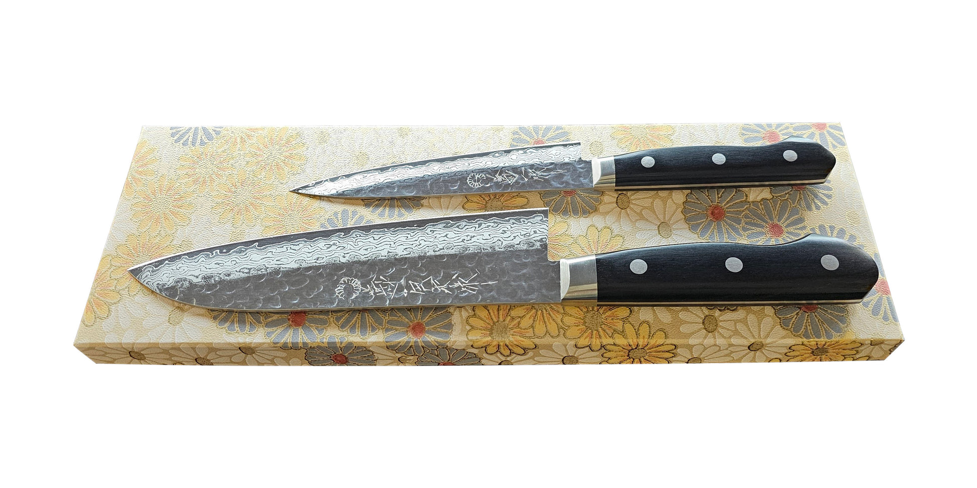 YSP Series Warikomi Damascus Tsuchime Petty & Santoku set